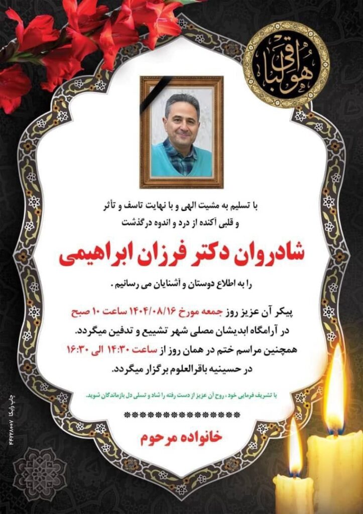 🔷 با نهایت تأسف و اندوه، مجمع خیرین سلامت سبزوار رحلت اندوهبار دکتر فرزان ابراهیمی، پزشک متعهد، انسان نیک‌اندیش و همراه همیشگی عرصه سلامت را به خانواده گرامی، جامعه پزشکی و مردم شریف شهرستان سبزوار تسلیت عرض می‌نماید.