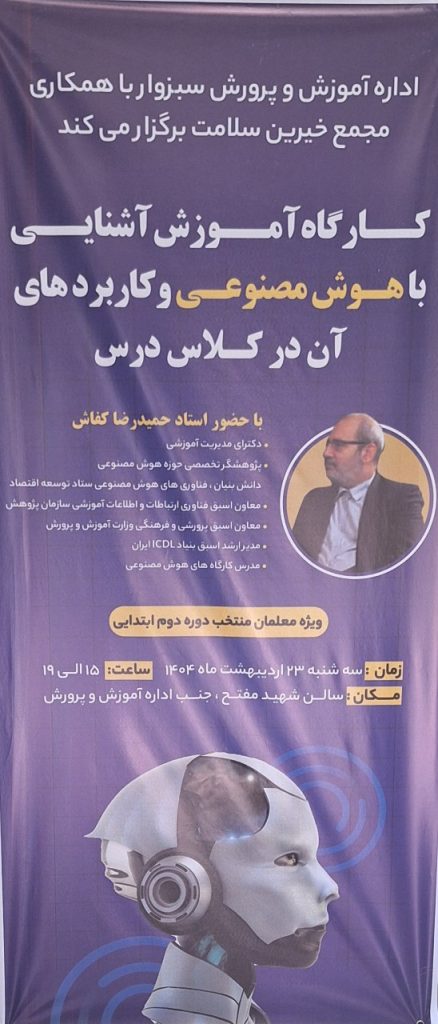 🔷در ادامه برگزاری سلسله کارگاه های آموزش هوش مصنوعی توسط مجمع خیرین سلامت سبزوار این دوره آموزشی با همکاری اداره آموزش و پرورش سبزوار برای جمعی از فرهنگیان این شهرستان نیز برگزار شد.