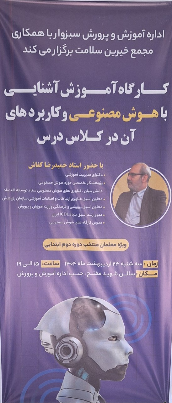 🔷در ادامه برگزاری سلسله کارگاه های آموزش هوش مصنوعی توسط مجمع خیرین سلامت سبزوار این دوره آموزشی با همکاری اداره آموزش و پرورش سبزوار برای جمعی از فرهنگیان این شهرستان نیز برگزار شد.