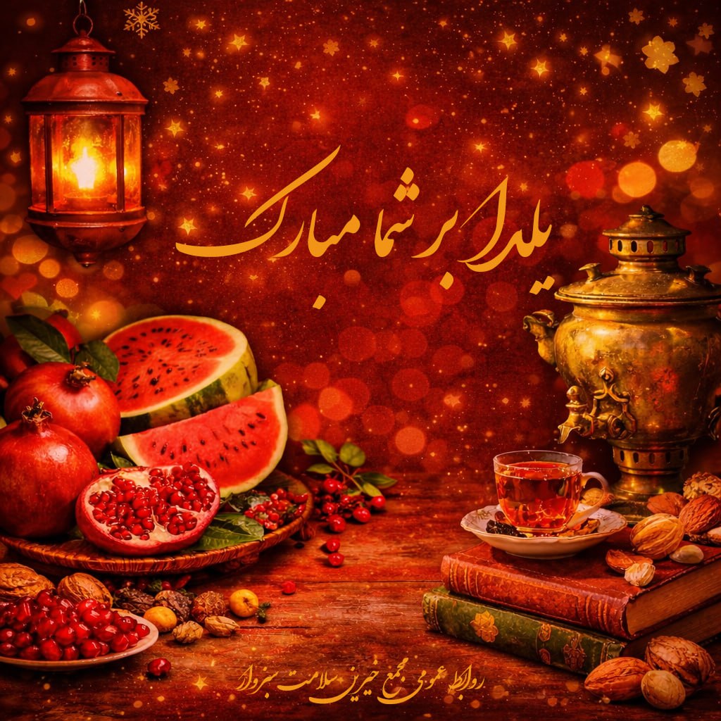 🔷 مجمع خیرین سلامت سبزوار فرارسیدن شب یلدا را به همه مردم نیک‌اندیش، خیرین ارجمند و همراهان همیشگی تبریک می‌گوید و آرزو دارد این شب سرآغاز روزهایی روشن و سلامتی پایدار برای همه باشد.
